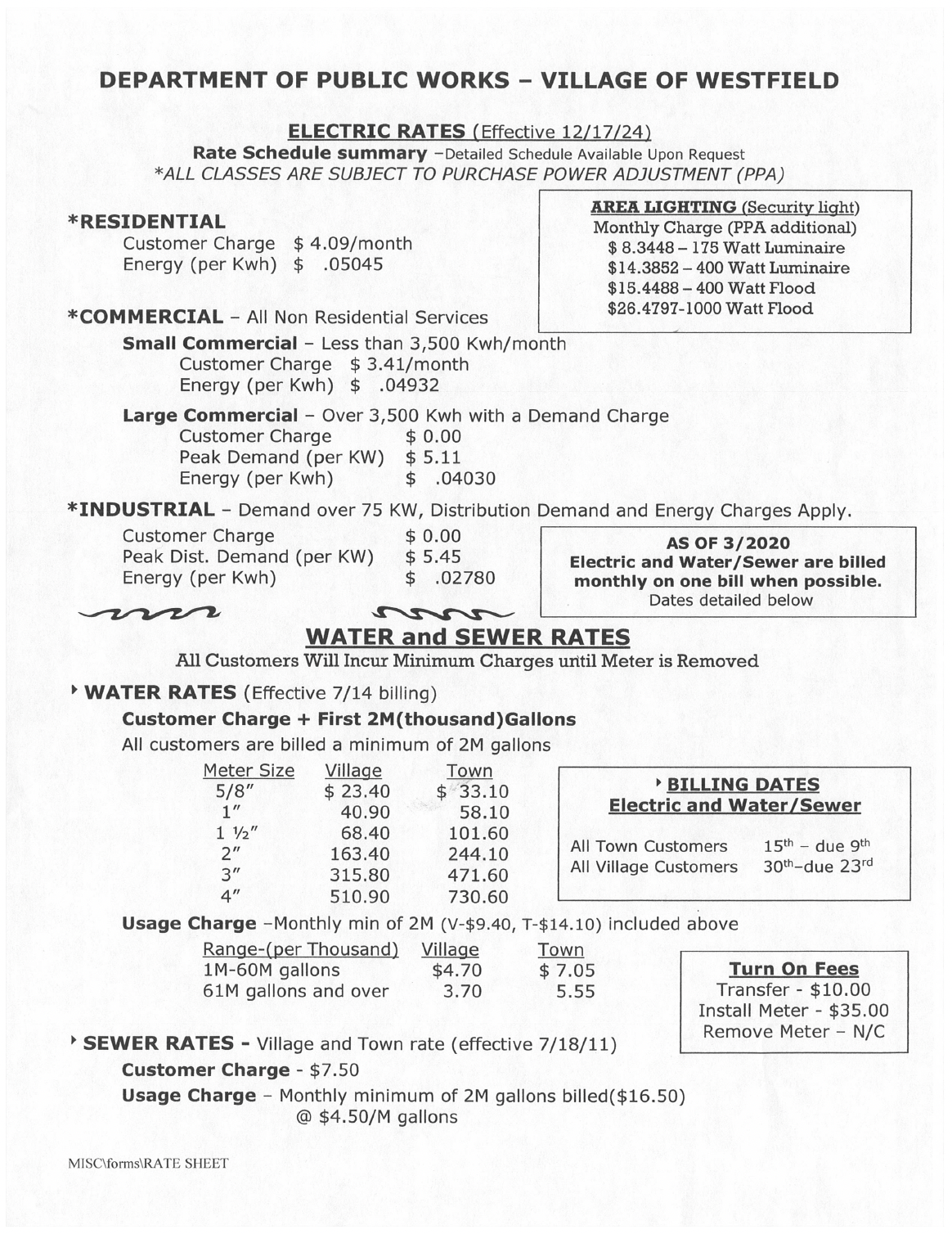 Electric, Water & Sewer Rates - Updated 12/17/2024